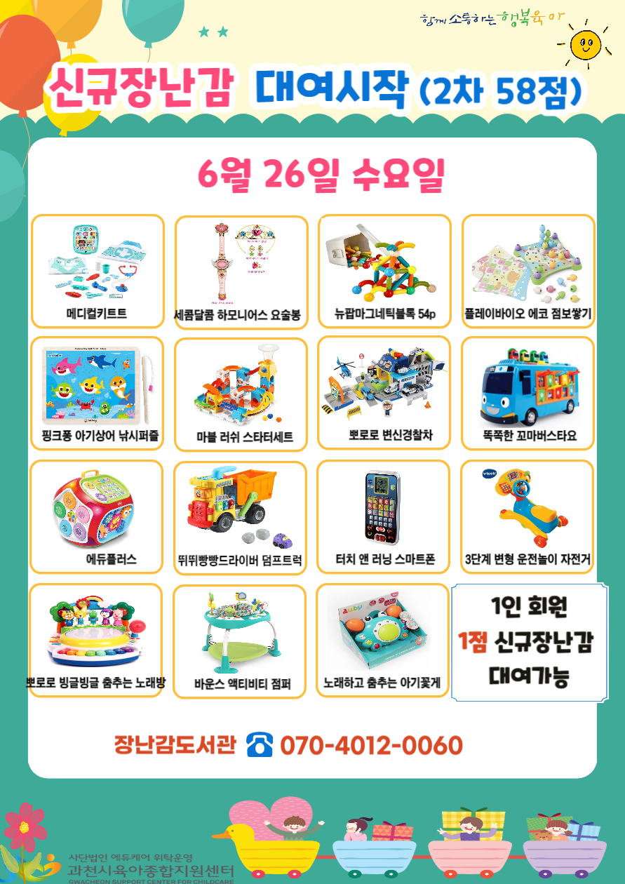 2차 신규장난감 대여시작(24년 6월26일- 수요일)
